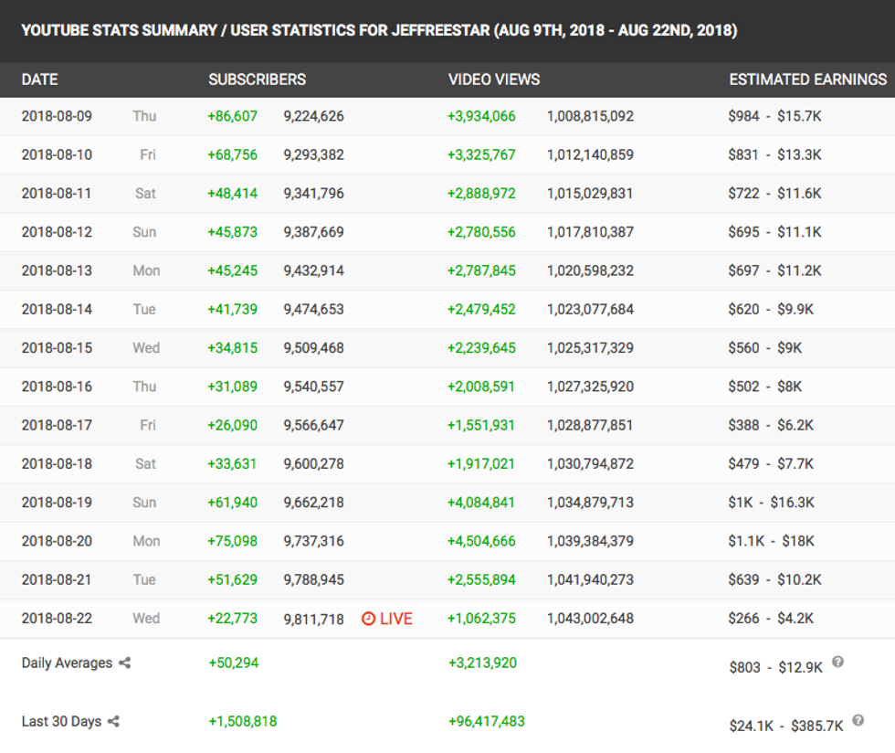 Meanwhile with all of the other people involved, here are their current subscriber counts: