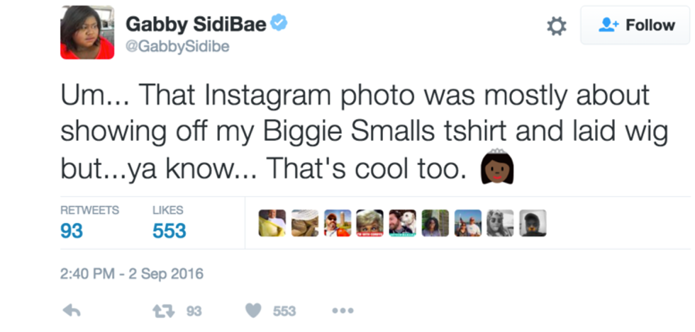 Unfortunately we live in a world where people cannot just be people and post images on Instagram, but rather we focus too much on weight. Even unprompted people cannot leave plus-size actors alone with their body image. Can’t Gabi just live her life in her rocking tee shirts?