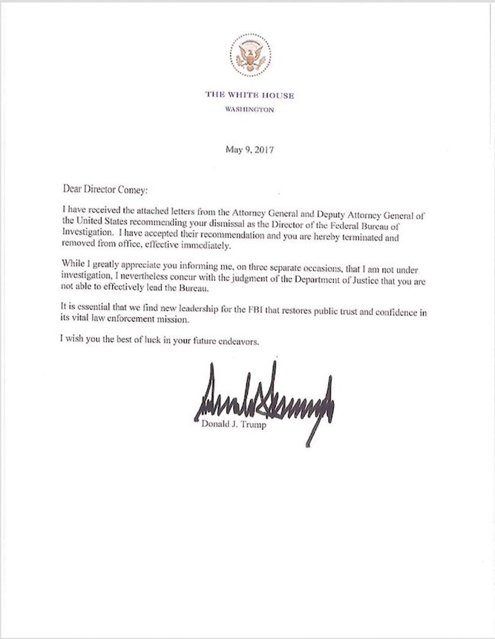 May 9, 2017 - Trump fires Comey, citing his handling of the Clinton email investigation as the cause. However, since Comey was also leading the Trump-Russia probe, people wonder if that had anything to do with Comey's untimely termination. Critics compared his firing to that of President Nixon firing the Watergate special prosecutor.