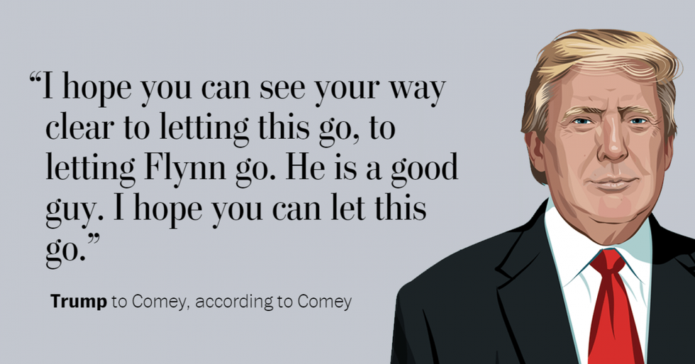 In his recount of his Feb. 14, Oval Office meeting with the president, Comey quoted President Trump saying, "I hope you can see your way clear to letting this go, to letting Flynn go. He is a good guy. I hope you can let this go." Although it seems like the case for obstruction is stronger now than before, Comey is hesitant to say that he had a sense the president had the intent to obstruct.