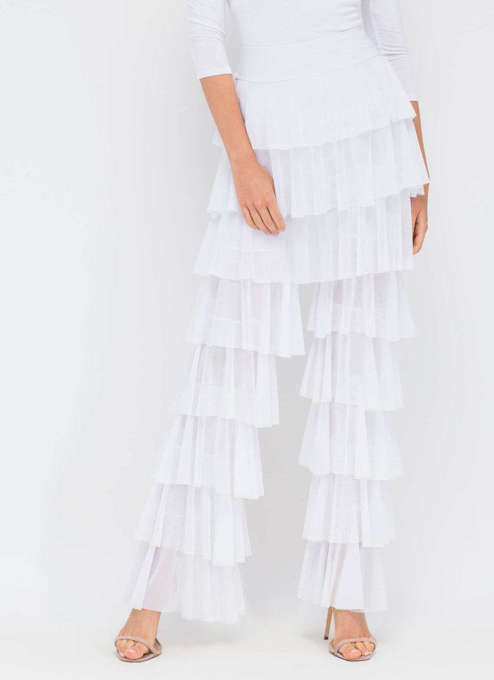 A little less grandiose than the others, this look is simplistic yet modern, and the cool light show on the white suit was mesmerizing. Plus, the ruffle pants are pretty cute too.