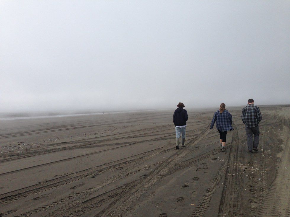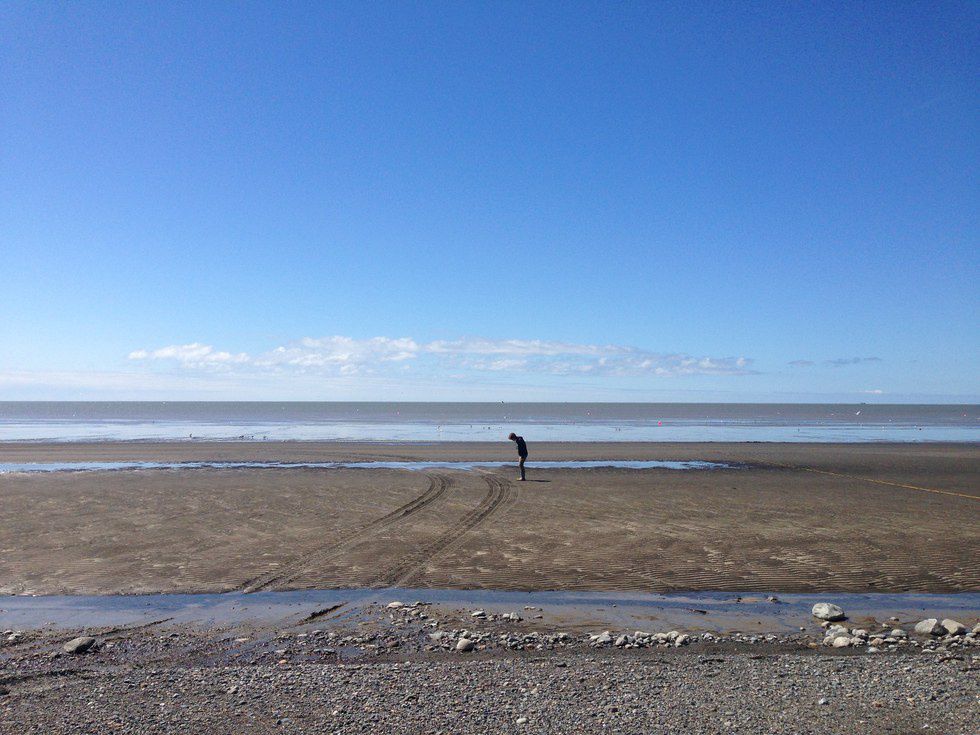 And then there was the other side of the bunkhouse. Here I found the ocean filled with strong salmon or covered in the golden and rose rays of sunset or sometimes no water in sight only miles worth of the ocean floor empty for my eyes to see and my feet to touch, tide pulled to the sky.