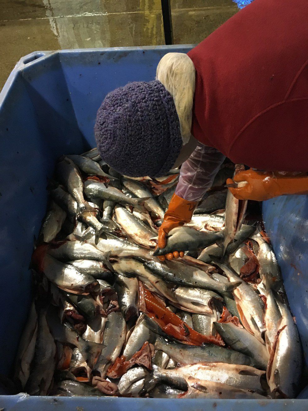 And I worked hard, harder than I have ever worked. I fell in love with hard work, manual labor. For 35 of the 46 days I lived in Egegik I worked about 16 hours a day. And the 9 other days, I worked about 8 hours a day. I gutted salmon, I cleaned salmon, I sorted salmon, I packaged salmon. 10 million salmon passed my fingertips. And when I wasn’t handling salmon, I was eating salmon, dreaming salmon. But every once and a while, I managed to escape the salmon. Even if only for a few minutes between meals, in the sight of the sunrise or a conversation with a friend or the comfort of coconut macaroons and bitter coffee or a warm shower or bed after a long day of standing, I found freedom and peace.