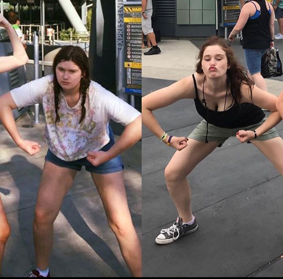 One of my favorite transformation pictures, posing outside of the Hulk Roller Coaster at Universal Orlando, 4 months apart.