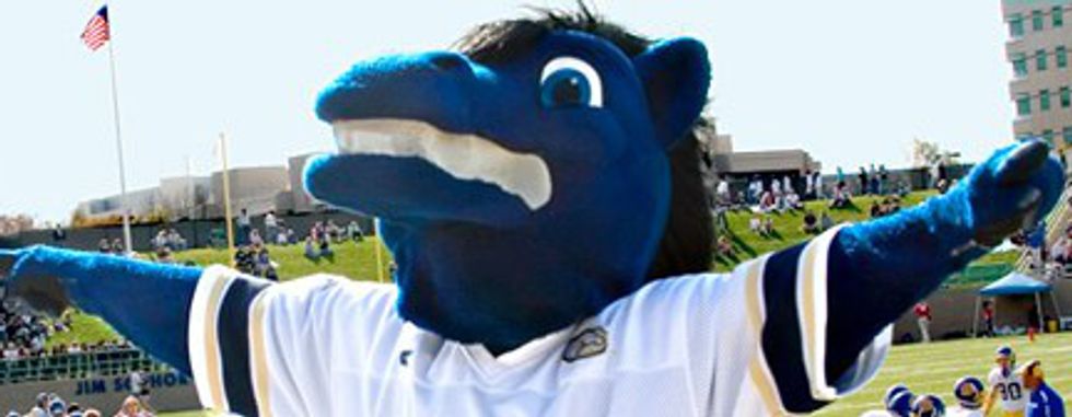 In case you didn’t know what the UC Davis mascot was, apparently it’s a blue horse with a creepy smile, and hands instead of hooves. Although this mascot’s genetic makeup is quite confusing, I still wouldn’t consider it intimidating.