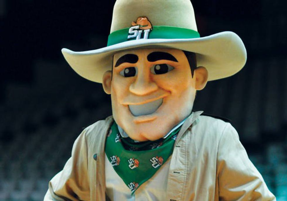 Thankfully, the smart individuals over at Stetson realized how weird it was to just have a hat as their mascot. As a result, the present-day mascot is a much smaller hat that is worn by a man. That's still not intimidating, but a lot less creepy.