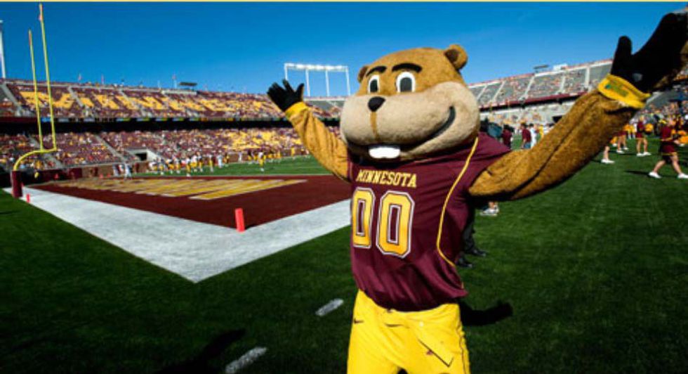 With a kind face and even kinder hand gestures, it's safe to say that the University of Minnesota’s mascot is the furthest thing away from being intimidating. I can’t even hate on it. It’s just really cute.