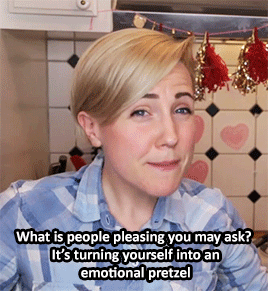 If you clicked on this article you're either a. a people pleaser and you want to change, b. think you might be a people pleaser, but you aren't quite sure, or c. you were just bored and wanted to read about people pleasers/pleasing. Well, whatever it may be, I'm going to tell you what people pleasing is...it's exactly how this GIF says it is. If you are a people pleaser, then yes, you are also an emotional pretzel. And let me be the one to give you this big ass "hard to swallow" pill, at the end of the day, no one likes an emotional pretzel. Now, let's see if we can't untangle you.