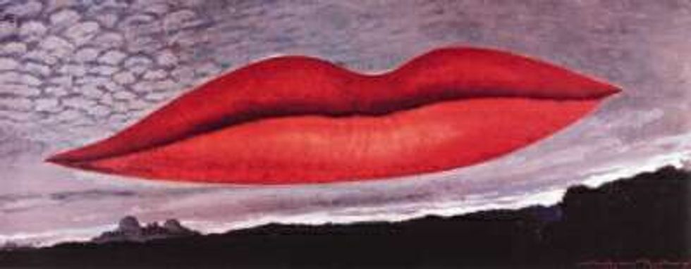 So she traveled to Paris where she met Man Ray and persuaded the surrealist to teach her photography. Not only did she become his student, she was his lover and muse. She is featured in much of his work. I his painting, aptly titled "Lips" it's her lips floating above the mountain range. Interestingly enough Roland Penrose organized a surrealist exhibit that included Man Ray's lips. Little did he know that the painting featured his future wife's lips.