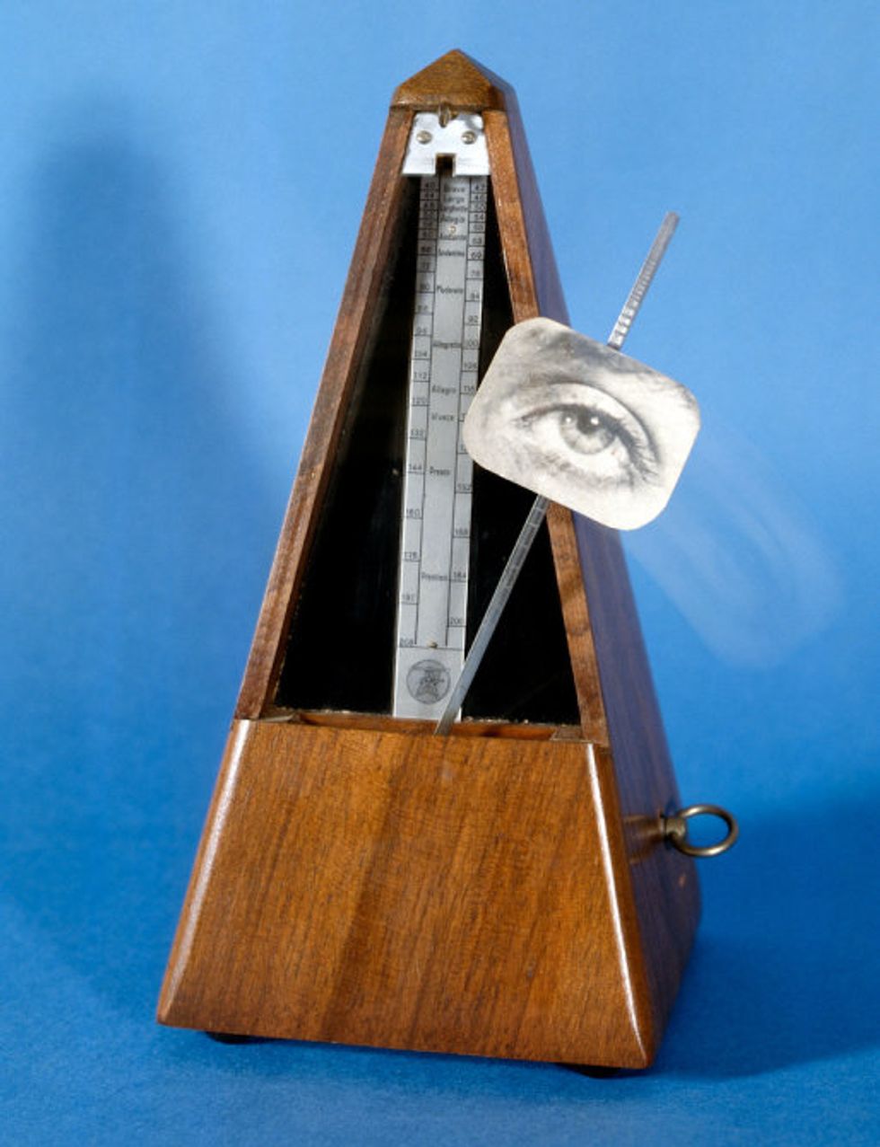 Lee Miller and Man Ray's exciting, passionate and tumultuous relationship ended and Man did not take it well. In fact, one of his most famous pieces, Indestructible Object, includes her eye ticking on a metronome. This is a replica as the original was destroyed in Paris in 1952.