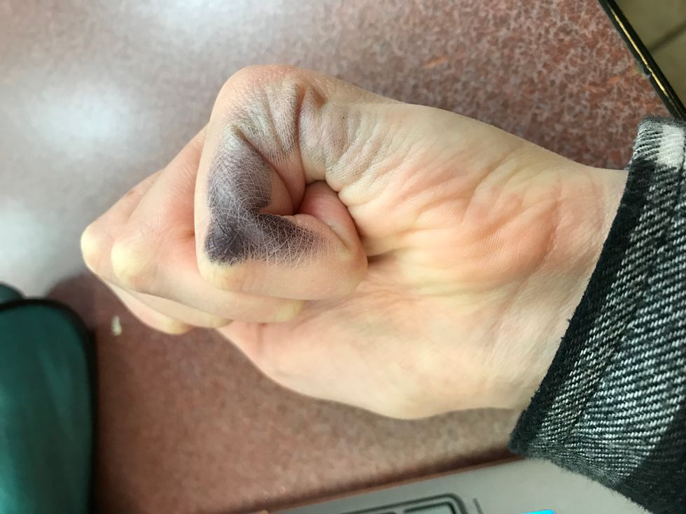 Once again, the whole writing left to right rule is awkward when you're left-handed. When I write in pen, the side of my hand drags over the words I have already written and by the end, my hand is covered in ink. People have looked at me in horror and asked about the "bruise" on the side of my hand. It's from a pen, calm down. Yes, this is actually my hand after I took an essay-based exam.