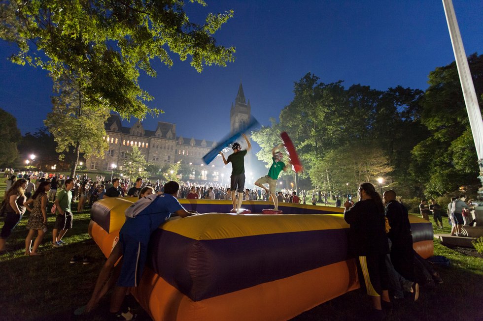 - Gryphons frequently host hall events, such as s’mores and stargazing, the annual Rock the Quad barbecue or visits from the Goose’s beloved Tony Silvoy.