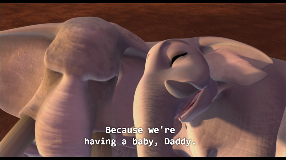 Moments like this made me want to settle down with an elephant as dashing and brave as Eli Phant. The recollection of the mother elephant, Savanna, when she told her husband, Eli, that she was pregnant was practically oozing romance. So was the scene in which Savanna fell on Leo (our vegetarian protagonist), crushing him, and making him fall in love with her in the process. Nothing moved me like Savanna and Leo’s inter-species babies, though. Their love was so strong that it transcended biology.