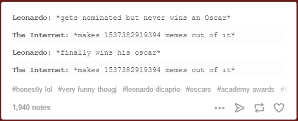 Maybe you thought that this would be the end for the internet's most beloved meme, but think again. Before the award announcement, all over social media, people were scrambling for their last chance to reblog the Leo memes. And after the announcement, well...