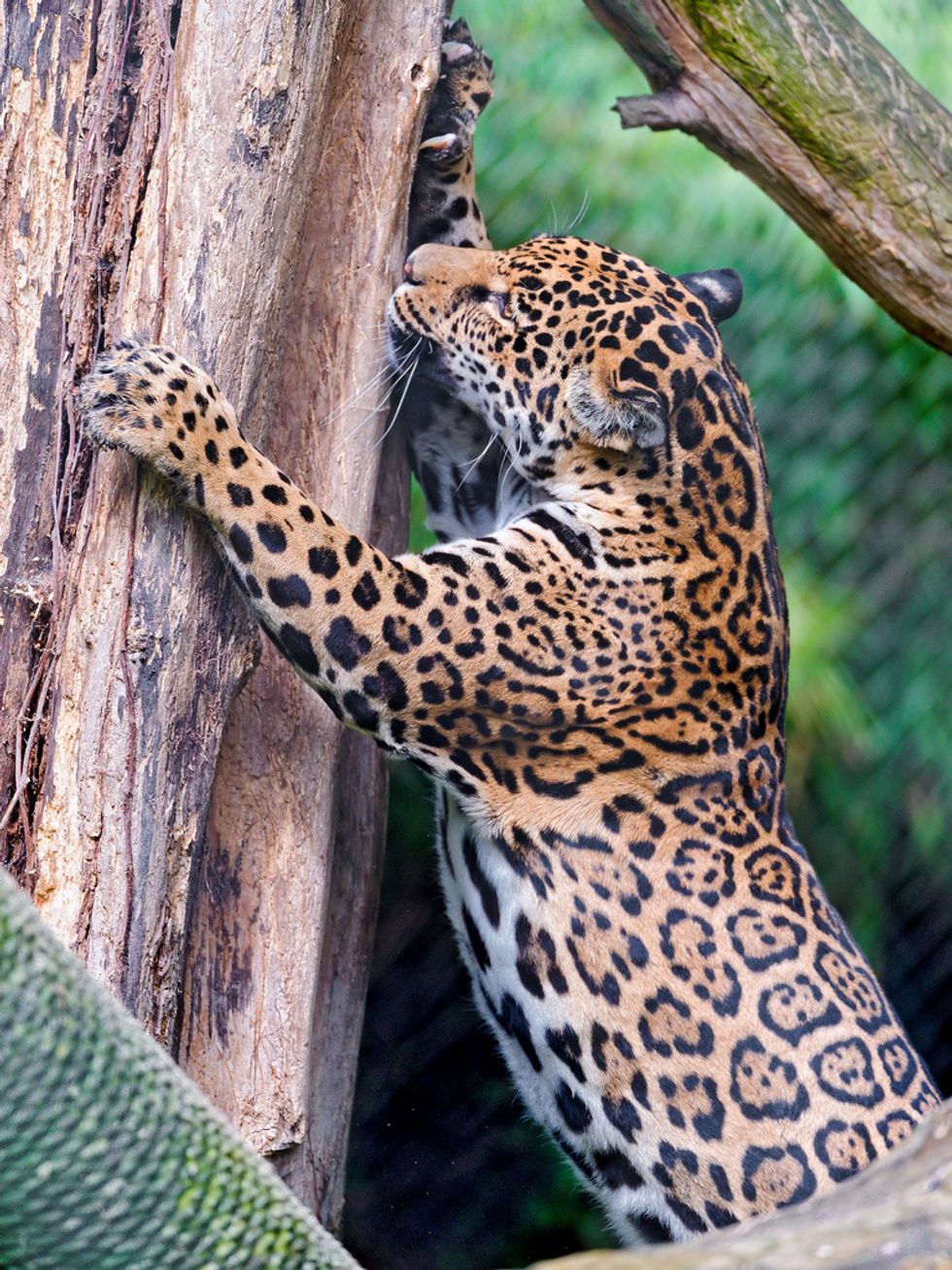 Like a domestic cat, this helps keep their claws sharp while indicating to other leopards that this tree is theirs.