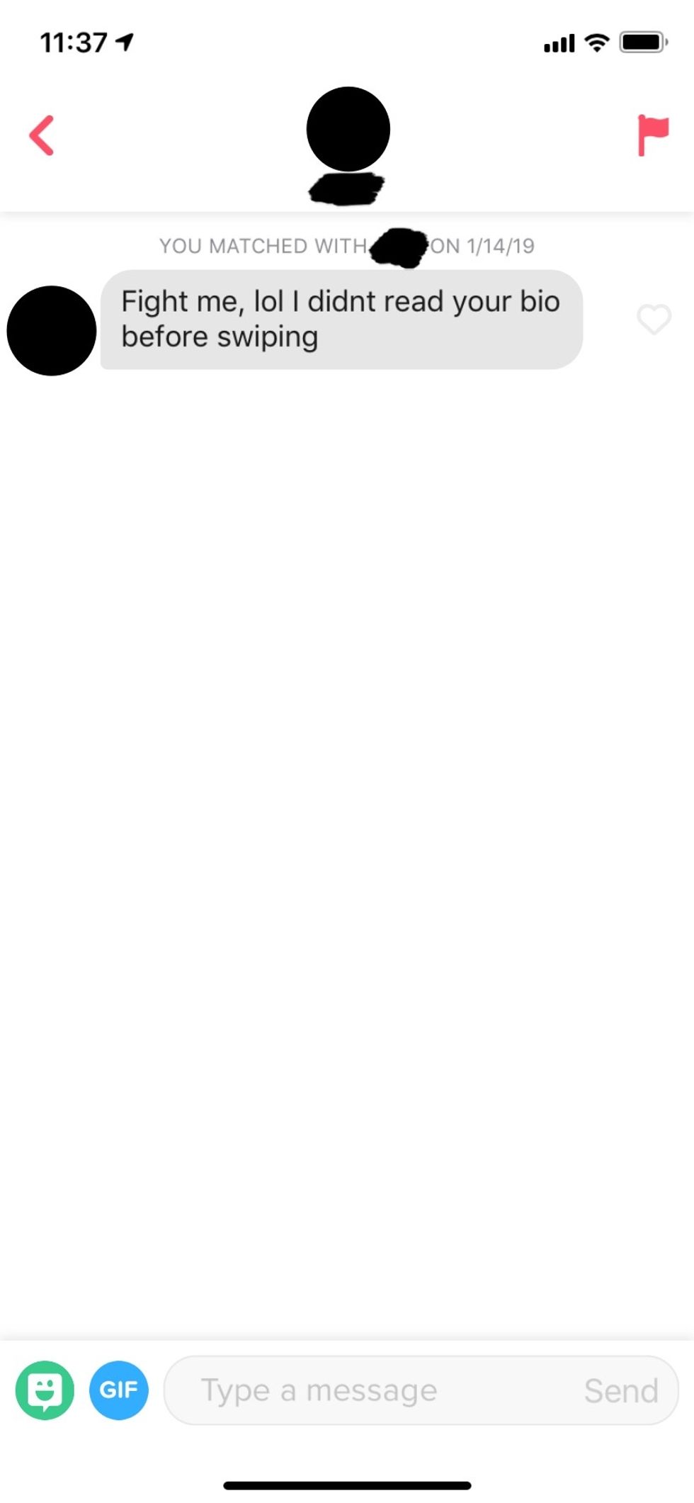 Though his words annoyed me greatly, I do have to give him props for owning up to his carelessness. No doubt, a lot of guys AND girls are guilty of mindlessly swiping right on every person that pops up in their feed. Sure, you could be getting more matches that way, but you could also be setting yourself up for disappointment later on. Just ask this guy.