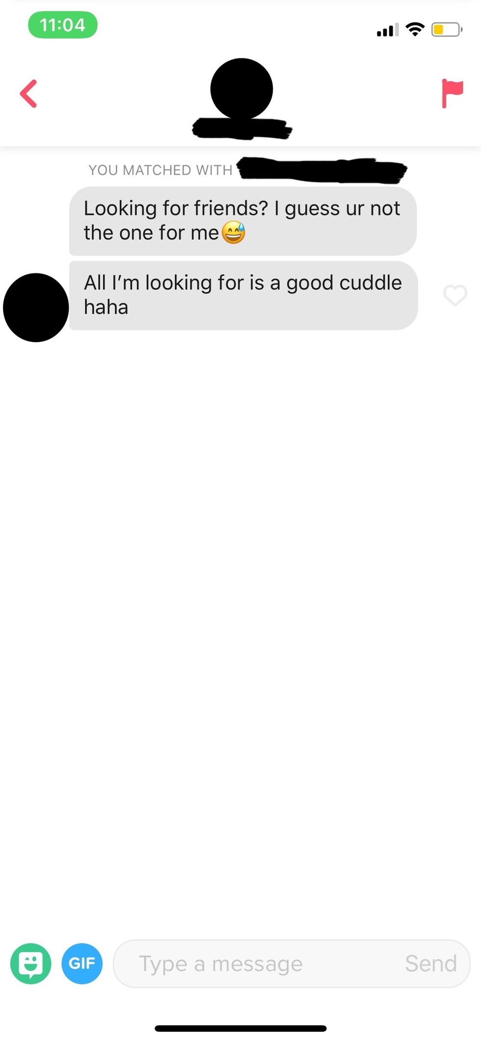 I know for a fact that this gentleman didn't even bother to read my bio, or else he would have seen in plain sight the "looking for friends" clause I wrote towards the bottom of it. It's a fair question, but it could've been answered if you had taken the time to care about who you matched with.