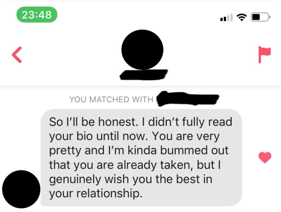 Both of our bios mentioned in some capacity that we were lesbians, already had a girlfriend, and were only looking for friends.