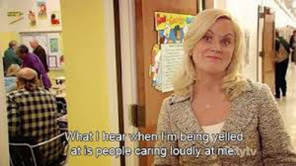 If you are the subject of uninvited advice or criticism, let the offender be. Perhaps they really do care about you, but they project it in an atypical manner. You do not have to execute their commands, just listen until they are finished presenting their perspective, and then gently communicate to them any misunderstandings that may have emerged. Sometimes peoples’ intentions get obscured because of the inadvertent way in which they choose to communicate. As Leslie Knope states, sometimes we just need to look at it as if they are caring loudly at us.