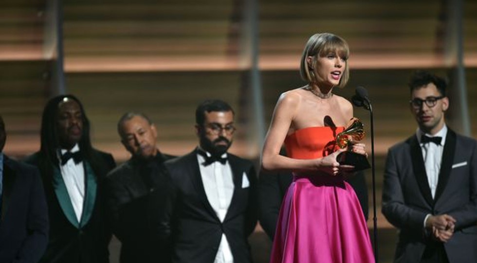 "As the first woman to win Album of the Year at the Grammys twice, I want to say to all the young women out there, there are going to be people along the way who will try to undercut your success or take credit for your accomplishments or your fame,” Swift said while accepting the award for her album “1989”. “But if you just focus on the work and you don’t let those people sidetrack you, someday when you get where you’re going, you’ll look around and you will know that it was you and the people who love you who put you there. And that will be the greatest feeling in the world. Thank you for this moment.”