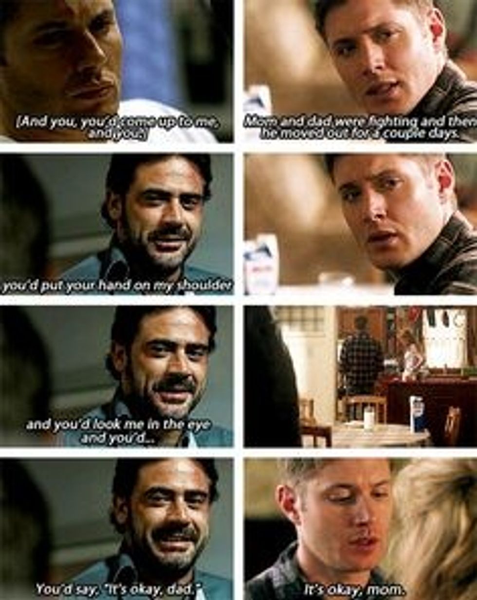 "Just because you're blood doesn't make you family." Dean, Sam, Bobby, Cas. They've all had great quotes about family. They have shown me that sharing blood means nothing. The people that care most about you are your family.