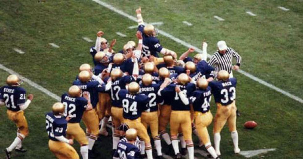As a Notre Dame student, I can't leave this one out. Rudy, a walk-on football player/tackling squad member, who battled dyslexia and financial instability to make it into the University of Notre Dame, finally gets to play during his senior year and is carried off the field by the team when they win the game.