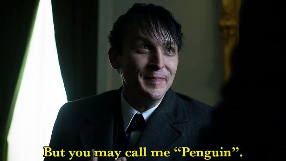 Fox’s new hit series "Gotham" is thrilling, violent, and pure genius. If you’re familiar with the "Batman" movies, or just have a general knowledge of the characters, the series is easy to follow and highly addicting. One of the star villains in the series is Oswald Cobblepot, also known as ‘The Penguin,’ and is brilliantly played by actor Robin Lord Taylor. Some even say that Taylor was born to play the part because he plays it so unbelievably well. Every line he speaks is said with poise, elegance, and a hint of tactfulness - ultimately making him the number one villain on the show. Here are his top three quotes that show why Penguin is truly a legend.