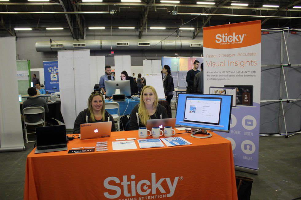 Sticky is a company whose focus is a market engagement tool that tracks consumers eye movement. Jamie. one of the reps in the photo below, explained how some company's gather information about their consumers by tracking their eye movement on the website through the consumers webcam. Now, at first it sounded intrusive but let's face it this is the technology of the future and it's kinda amazing despite how strange it may sound.