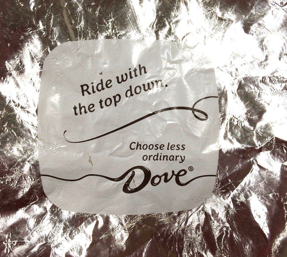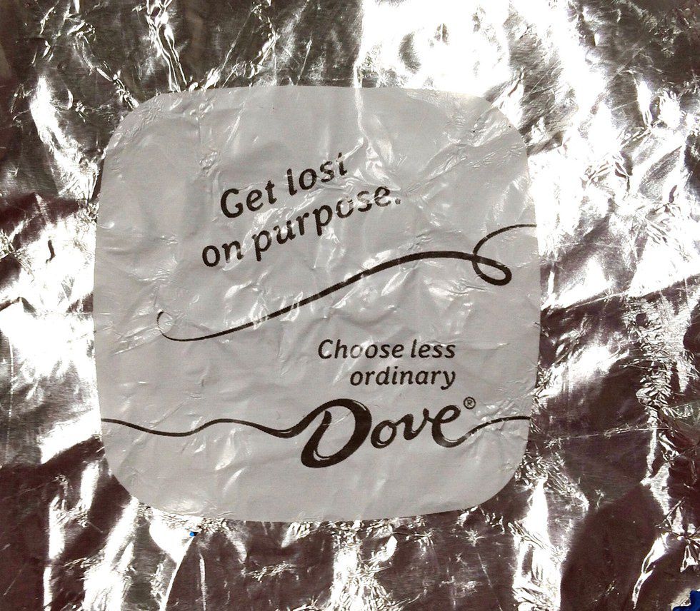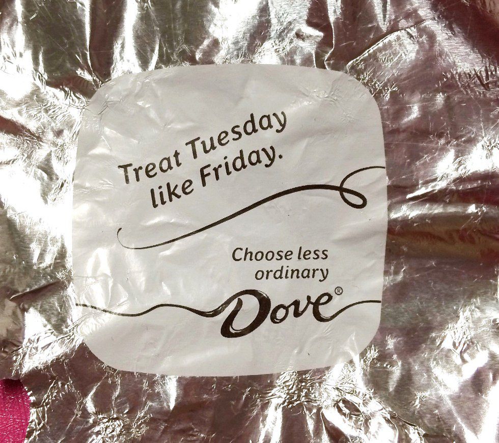 The other day I bought some Dove chocolates to munch on during the week. Just when you think a piece of chocolate is enough to help get through your stressful day it turns out that a happy little phrase is also hidden inside the chocolate wrapper. I decided to keep mine because they have great insight.