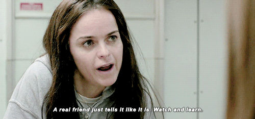 It's obvious within every clique in the jail that the inmates value their friendships. They look out for, stand up and protect each other like blood. Taystee and Poussey, Boo and Dogget, Red and Nicky, Ramos and Flaca and Sister and Burset -- they are all great examples of what friends are. Being in jail doesn't have to be lonely, so once you find that one person you connect with, hold on to them and be a true friend. We all need them, we all have them, we all can be them.