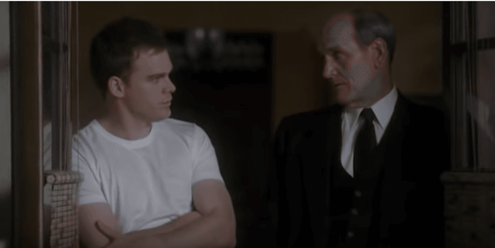 The above interaction is from "Six Feet Under," a show about the grief of a family that owns a funeral parlor. A dark comedy series, the show features hallucinations and flashbacks of the dead father of the family, Nathaniel. David is getting over an experience getting violently beaten and almost murdered by a stranger he picked up on the street, and he is grieving and unable to go on with life and his job for a very long time.