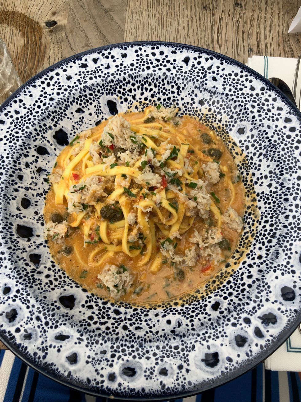 One of the nicest places to eat in London is also one of the coolest places I've ever seen. The Coppa club is just off the Thames river. While there is a traditional restaurant style seating area available, most guests tend to sit in what I call "the bubbles". Providing a 365º view, guests can sit in a secluded area that feels as if you're inside a tropical paradise. And of course, it's also a prime location for photos. I ordered the crab linguine and instantly fell in love!