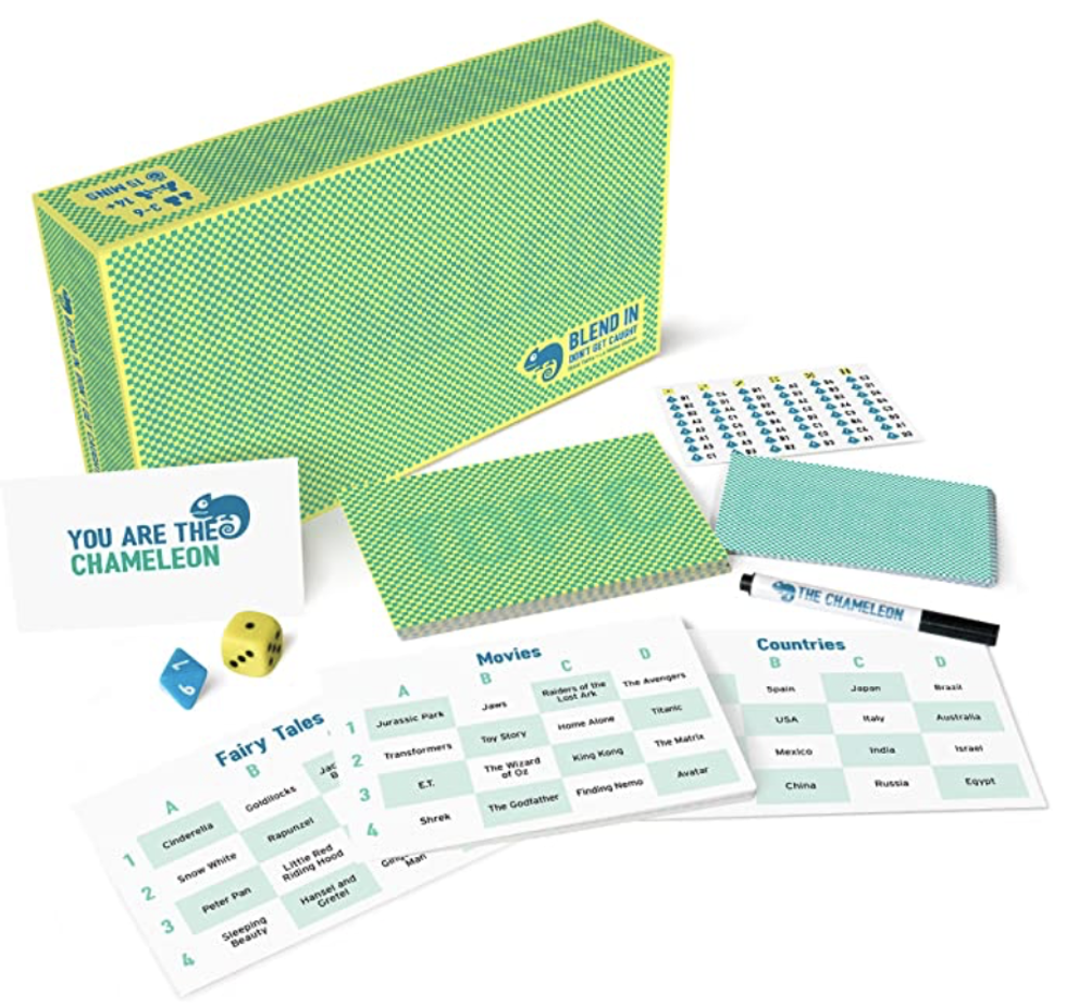 This board game is similar to more familiar games such as "Werewolf" or "Mafia" which are played with a deck of cards. The Chameleon starts with passing out cards, one of which reads "You Are The Chameleon." While everyone else knows which specific words is being described form the subject card, the Chameleon doesn't. It's the Chameleon's job to blend in and hopefully figure out which word is being described from the other players. If the Chameleon can't figure it out and gets caught, they lose!