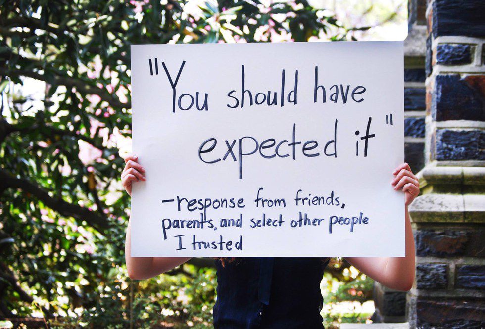 Victim blaming is one of the most disgusting concepts in our society today. The fact that police officers often ask victims what they were wearing, how much they had to drink, and who they were with should not deter from the fact that they were attacked. They were not asking for it. Society teaches us “don’t get raped” instead of “don’t rape.” It is never the victim’s faultThe aftermath can be just as bad (or worse) than the attack itself. When we think of PTSD, we immediately think of soldiers, men and women of combat. However, the National Women's Study reported that almost one of every three all rape victims develop PTSD sometime during their lives. Survivors of sexual assault can experience depression, suicidal thoughts, nightmares, irritability, and the feeling of always being on edge.