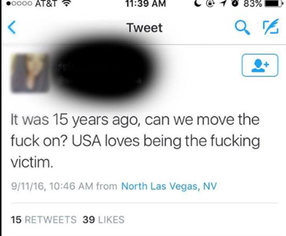 One tweet I saw on twitter this week stated “it was 15 years ago, can we move the f*ck on? USA loves being the f*cking victim”….