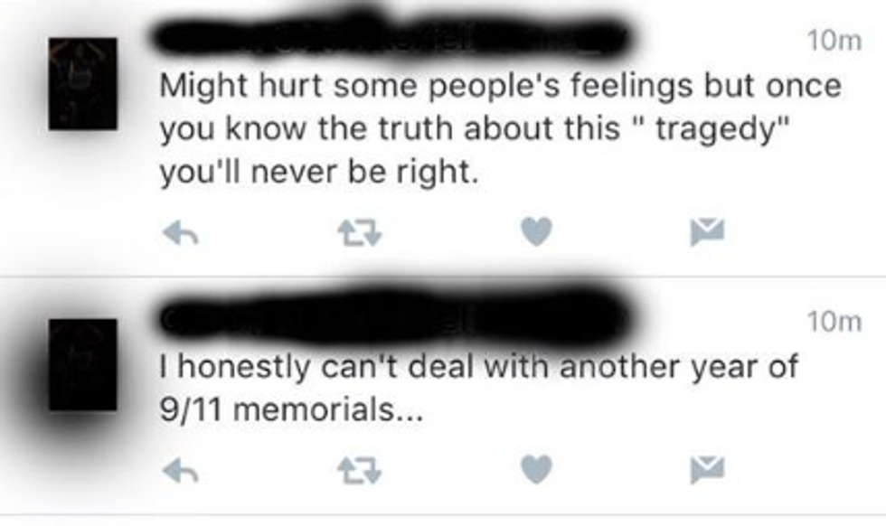 September 11th is not a day to speak about your conspiracy theories, who was accountable for the attack, if it was an attack or not, it is a day for our nation to come together as one to honor the fallen and remember the sacrifice that so many men and woman made that day.