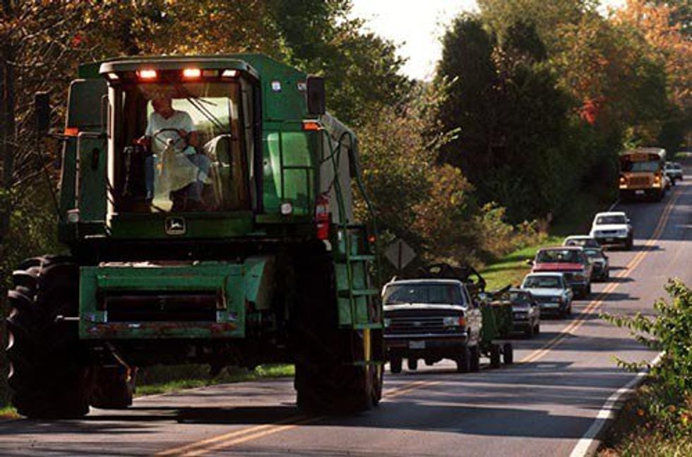 Now this is a point that I shouldn't even have to make but if you're going to complain about being stuck behind farm equipment, clearly you need a life lesson or two. Without that tractor and the guy driving it you wouldn't have food; FARMERS PUT FOOD ON YOUR TABLE. Modern agriculture provides enough food for 6.3 billion people worldwide. That means that each farmer is providing enough food for about 155 people. And for some odd (and unfortunate) reason, farmers don't discriminate against the people who try running them off the road so you're included in that number. I'm sure that when you're shoveling food down your throat you're not even considering the fact that a farmer worked hard for that food to be there BUT they did. Farmers are up before the sun and they stay up way past when it goes back down. It wouldn't hurt to say a little thanks for that too.