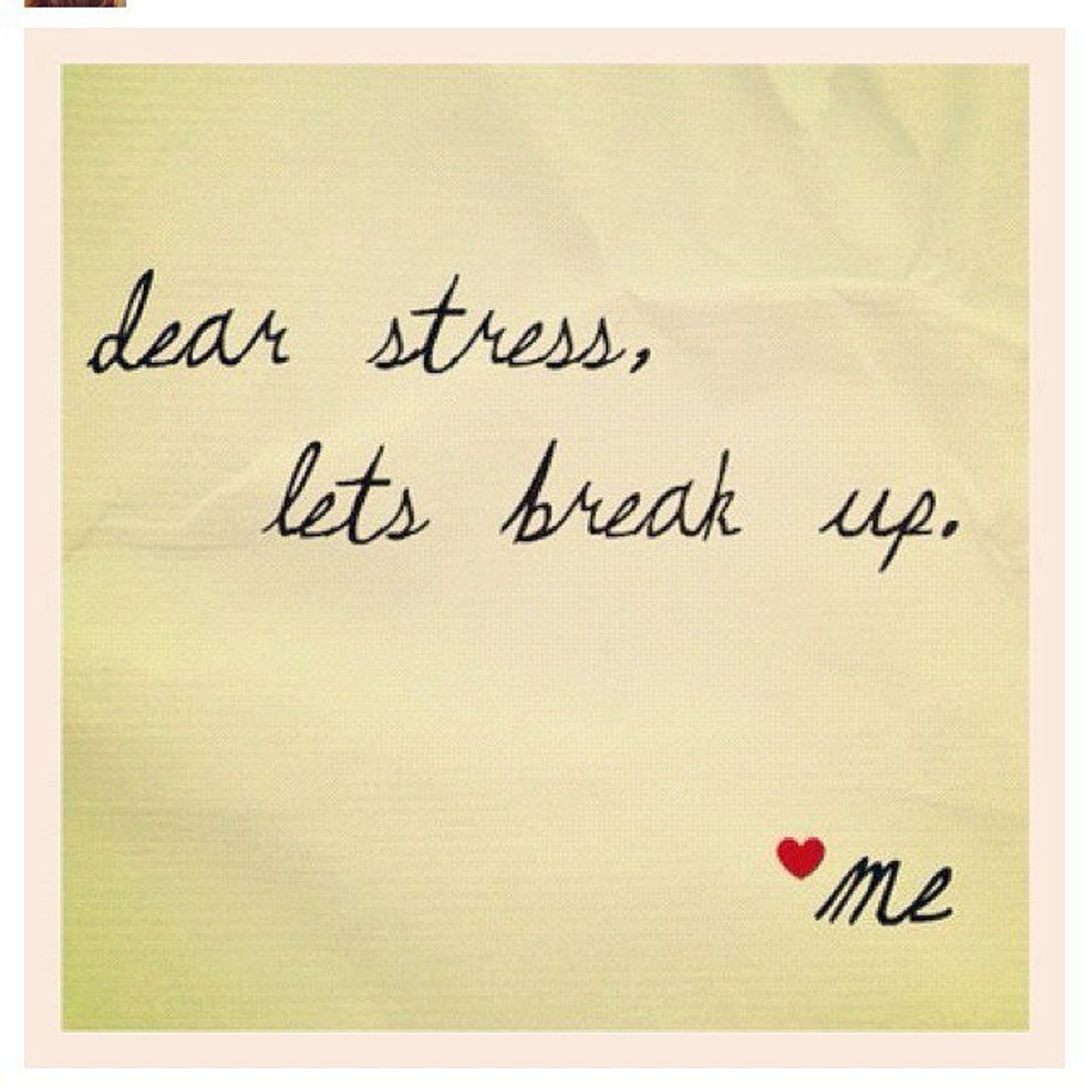 Goodbye, Stress. You are a terrible companion and it's time for us to cut ties. You're done making me anxious and worried. You're not needed here anymore.