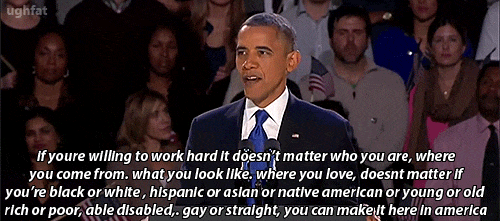 As we settled in, we began noticing cracks in the foundation on which you stand. It nearly broke the nation in two. With the determination of many people, we were able to come back together as a country and began rebuilding. Of course, this issue is still seen today. It may be hard to believe, but it is most likely true. There's still a long way to go, but I know that when come together as a whole, a united front, there's not much that can hold us back.