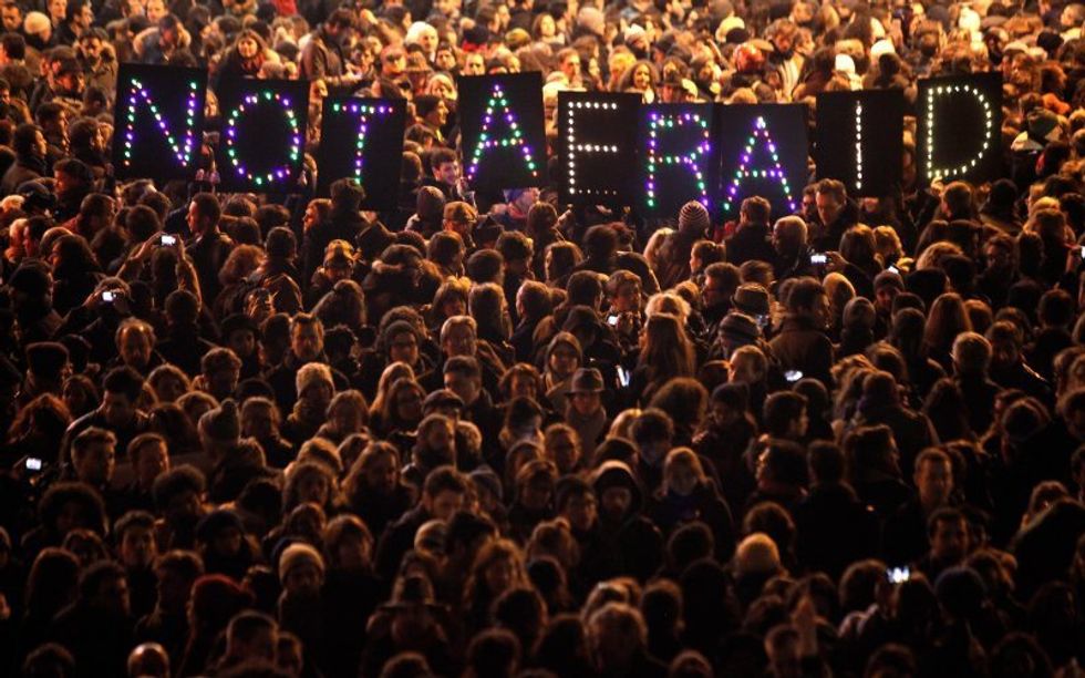 As your President, Francois Hollande, said "France is strong and even if she is wounded she will get up always and nothing will hold her down."