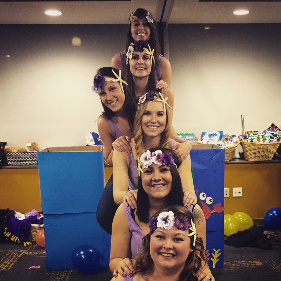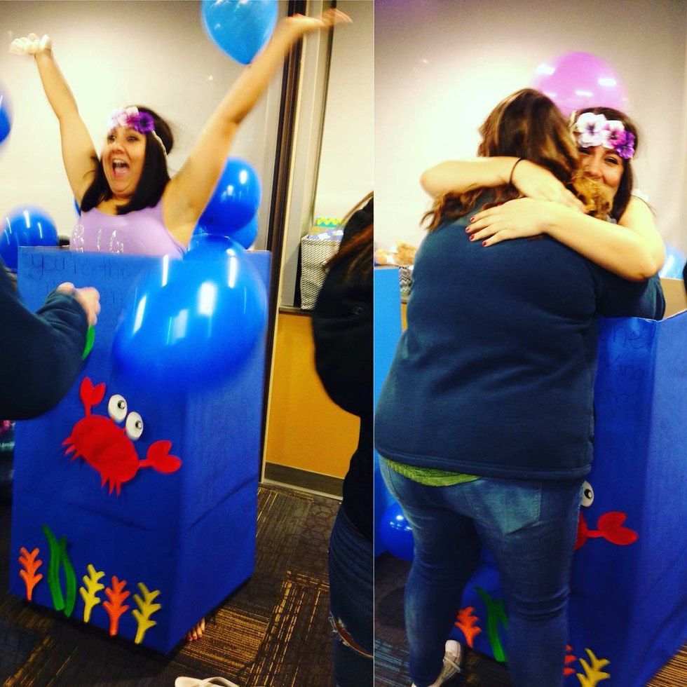 When I first met my big, I knew that we would be best friends. She loved Disney just like me and we were both looking for a bond that would last a lifetime. I remember the day that I found out she was my big and I got introduced to my amazingly beautiful family. Not only is my big amazing, but so is my family. All of us new members walked into a room with large boxes. Each were decorated to match a key that we had found earlier. I went to my box and stood in front of it with my heart nearly about to beat right out of my chest. Everyone in the room counted down from three and all the bigs jumped out of their boxes, except for mine. Then she finally jumped out of the box and I ran forward with arms wide open to embrace my big.