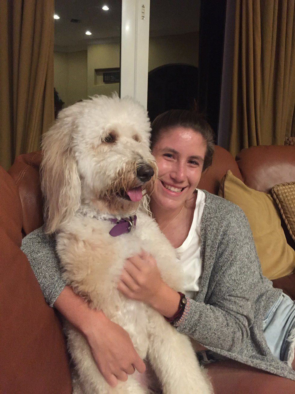 Even though Cali doesn’t understand the full objective of the game fetch, she has many other talents that can amaze you. She knows how to sit, lie down, and stay all thinks to the doggy boot camp we sent her to in Tampa for a week. I wish they could train some of my friends to do those things. And although her coordination is very off and she is probably the clumsiest dog you have ever seen, she can occasionally catch a tennis ball. All you have to do is say “save it” and she miraculously gets somewhat athletic and motivated to catch the tennis ball flying at her face. And last but not least, Cali can tell us when she wants to go outside by ringing, with her nose, a set of bells that we have hung up on the nob of our door. She usually just uses it to go outside and play but at least it gives everyone a big laugh.