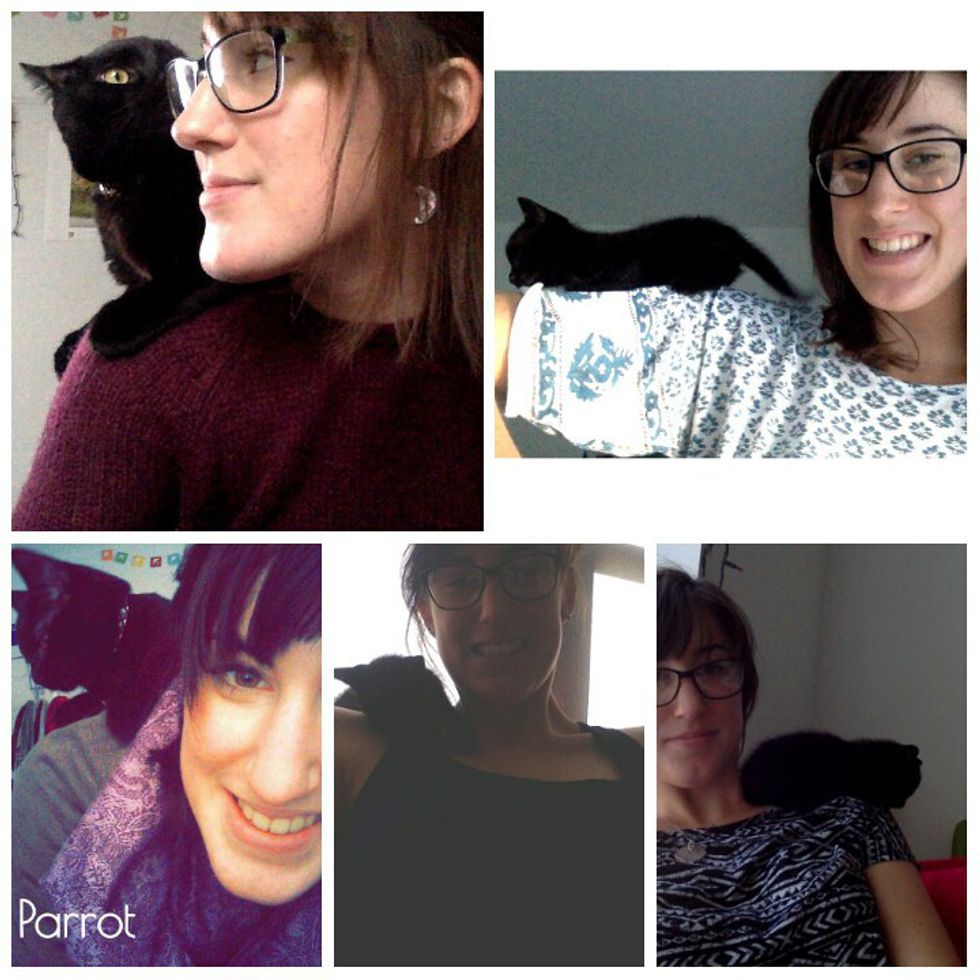 You are super cute and when you were very small, you used to love to climb on to my shoulders. Now you are a little bigger, but you still love to try to sit on my shoulders. You are like my little tiny parrot kitten.