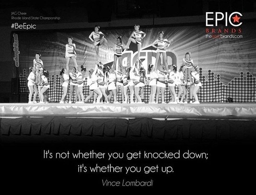 My final words to you are that I hope you cherish every moment. I hope that when you remember the competition you lost, you remember that it wasn't the worst thing that ever happened to you. I hope you proved everyone wrong, and I hope you went about it in a respectful manner when you did. I hope you remember the butterflies you got before walking on the mat, there is nothing like that feeling. I hope you remember the time you lost Summit and thought it was the end of the world, because now you know it isn't. I hope you can make jokes about when you lost because you know you deserved it. You know you could've done better, and I hope you take those losses to push you to go the extra mile. I hope you give it everything you have, and regret nothing. I hope you smile and say that you're proud of yourself for your accomplishments. I hope you talk to your teammates everyday about the latest drama in your life, and never go out of touch. I hope you had the time of your life. And most importantly, I hope you learned that cheerleading is more than a sport, its a lifestyle.