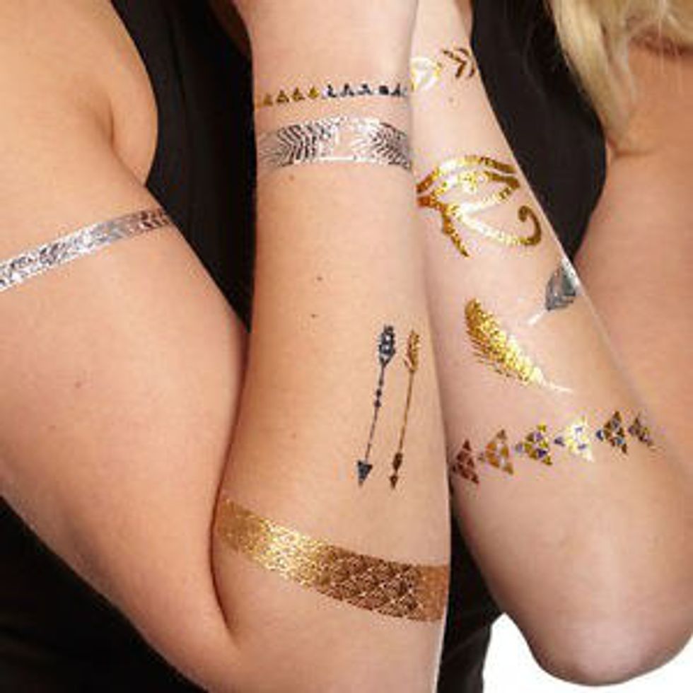 I LOVE this stuff. Specifically the shiny silver temporary tattoos. They kind of brings back some memories from when I was 10, but they also make great accessories.