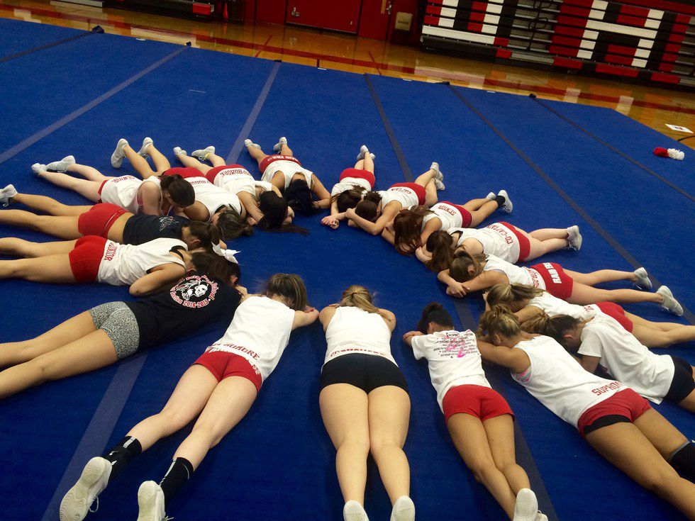 I'm sure there were times throughout the season where you were wishing that it would be over. I'm sure there were times when you claimed you hated cheerleading. And I'm almost positive that at one point or another, you wanted to give up and not come back. I hated hearing my coach yell that we were going full out. I hated hearing the words 'last time' even more because I knew they were a lie. I hated waking up early for a competition. I hated going to bed late due to a long practice. I hated running or doing push-ups because we just flat out weren't working as hard as we should have. I hated when my stunts weren't working. I hated when my tumbling sucked. I hated the fat lips, bruised arms, and sore backs. But right now? I would do anything for one more day with all of that. I never really hated any of that. Now that I'm looking back, there is no place I would have rather spent my years than on that mat.