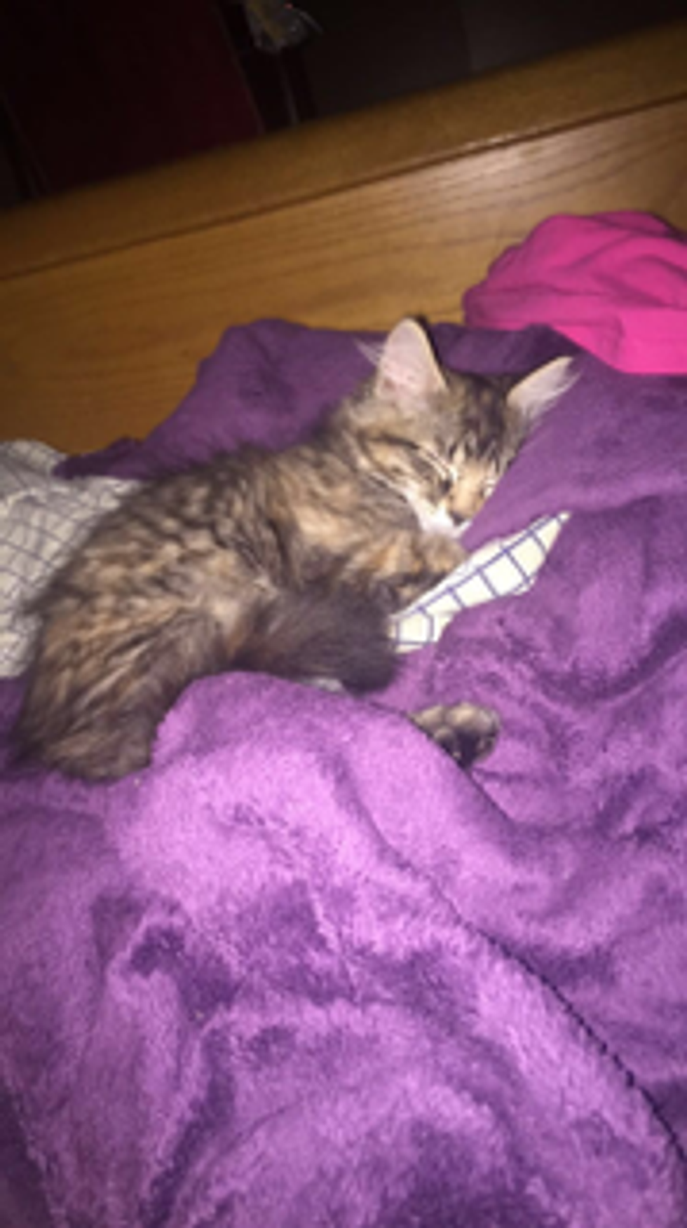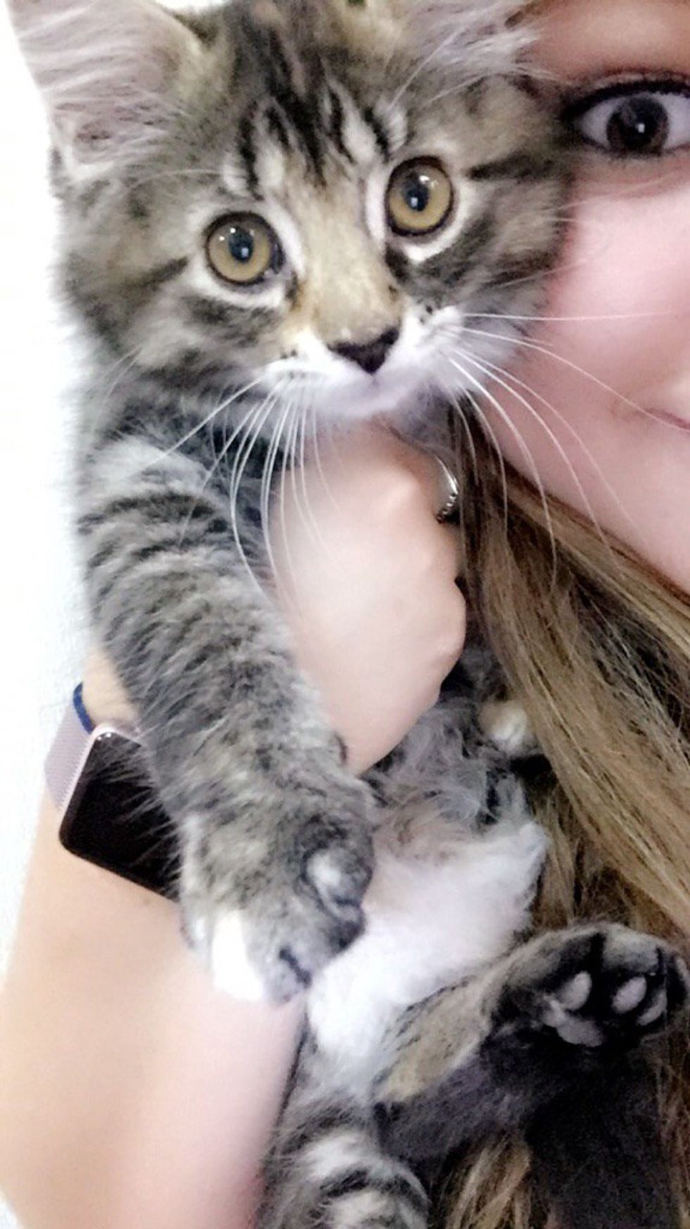 Because of a respiratory infection that almost 99% of cats leave the shelter with, Callie hasn't met her brother yet but I'm sure they will become close friends. Her favorite toy is a stuffed fish on a string and her favorite place is sleep is wherever I am.