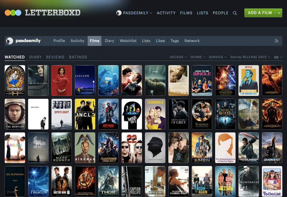 Over the break, my friend recommended downloading the app Letterboxd. I did, and then proceeded to spend three or so hours compiling all the movies I’ve ever seen. This app is addicting for the sheer reason that I want it to be completely accurate. I want it to fully reflect all the movies I’ve seen, mostly so the more artistically driven films like The Disappearance of Eleanor Rigby and Steve Jobs will counteract the fact that I have seen every Shrek and Sharknado movie released.