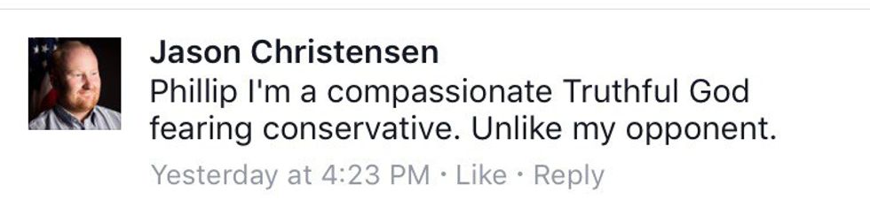 If the people of Utah somehow vote against the incumbent, Curtis Bramble, in favor of you, I will firstly be very disappointed with that district, but also now plead with you to open up your eyes and realize that there are people that are hurting. Please realize that YOU are intolerant when you write these things. Please go into politics with the mindset of wanting to help others, and not just yourself.
