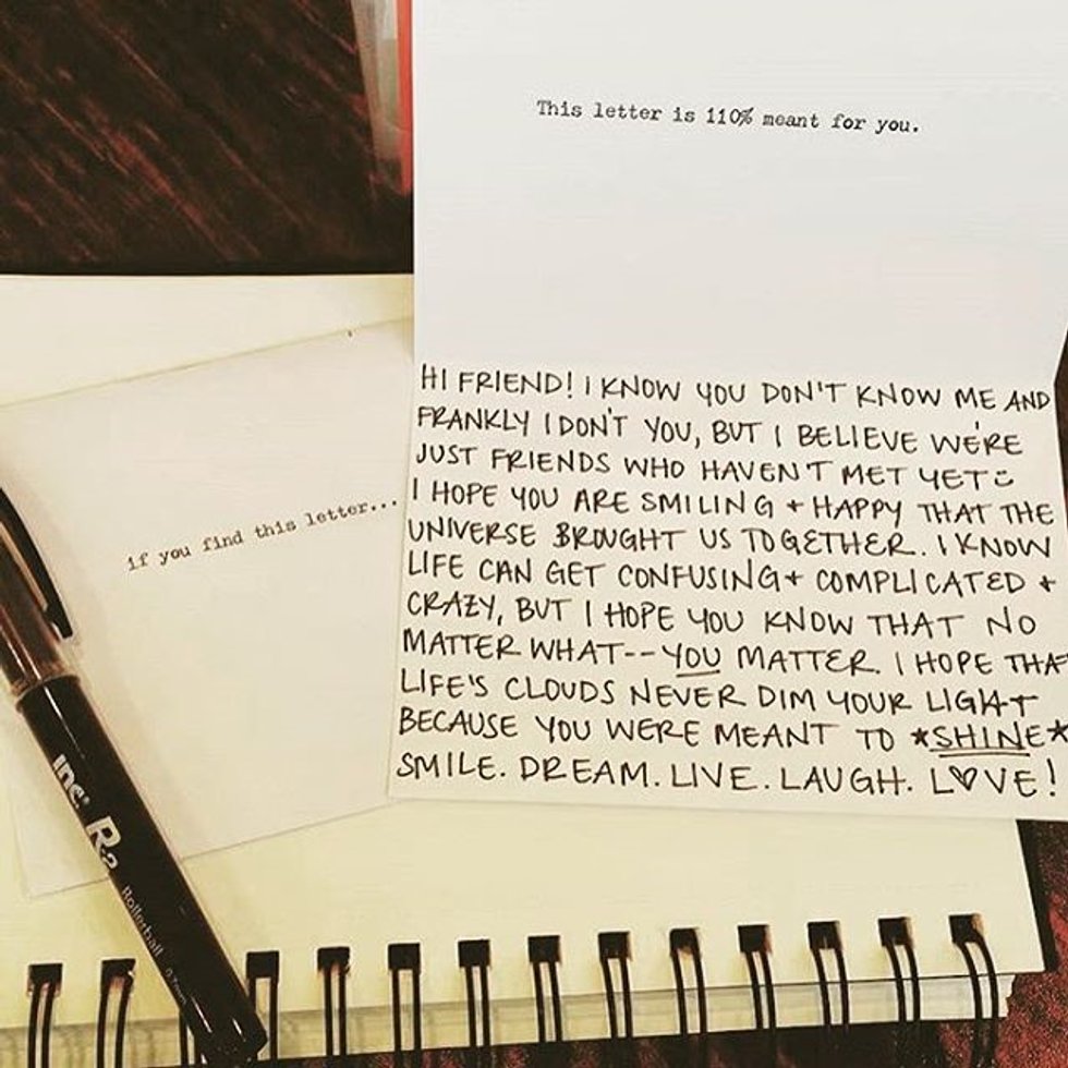 It all started with a book. If you don’t believe that a book can spark a change in the world you haven’t been reading the right ones. The book was titled If you find this letter: a memoir by Hannah Brencher. In summary it details the journey of a girl who longed to make a difference in the world, to be someone to everyone around her. One day this girl sends out into the internet a promise.